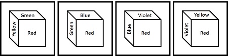| Question 19.In the given cube, which colour is opposite to Blue? प्रश्न आकृति में नीले के सामने कौन-सा रंग है ? ![]() |