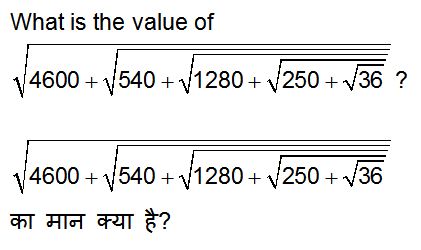 Q.n : 2 - What is the value of √(4600 + √(540 + √(1280 + √(250 + √36))))