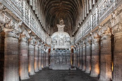 एलोरा भारतीय पाषाण शिल्प स्थापत्य कला का सार है, यहाँ 34 "गुफ़ाएँ" हैं जो असल में एक ऊर्ध्वाधर खड़ी चरणाद्रि पर्वत का एक फ़लक है। इसमें हिन्दू, बौद्ध और जैन गुफा मन्दिर बने हैं। ये पाँचवीं और दसवीं शताब्दी में बने थे। यहाँ 12 बौद्ध गुफाएँ (1-12), 17 हिन्दू गुफाएँ (13-29) और 5 जैन गुफाएँ (30-34) हैं। ये सभी आस-पास बनीं हैं और अपने निर्माण काल की धार्मिक सौहार्द को दर्शाती हैं।