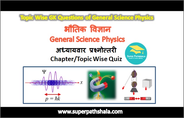 General Science Physics Gk Questions: General Science Physics is a very important section in almost every competitive exams like FSSAI, RRB NTPC, FCI, CWC, LIC, ESIC, IBPS, SBI, RBI, AAI, DRDO, ISRO, NTRO, State Level Exams, UPSC & Various Competitive Exams. Questions based on General Science Physics are always asked in various competitive exams. In this post we are providing you the Topic Wise GK Questions of General Science Physics. Practice these Multiple Choice Questions (MCQ) GK Questions of General Science Physics. General Science Physics comes under General Knowledge or Samanya Gyan section that is part of every exams. In this section we are providing GK in Hindi and GK Questions in English in another section. These Online Quiz contain the previous year asked questions in various govt exams, so practice these Online GK Test in Hindi at least one set of each subject daily. Get also all other subjects GK Questions and Answers in MCQ format from Super Pathshala.