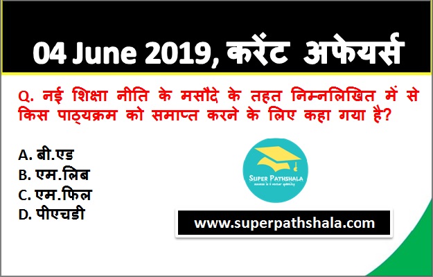 Ans: एम.फिल विवरण: मानव संसाधन विकास मंत्री रमेश पोखरियाल निशंक को प्रस्तुत की गई इस रिपोर्ट में कई नए प्रस्ताव रखे गये हैं. इस मसौदा नीति में लिबरल आर्ट्स साइंस एजुकेशन के चार वर्षीय कार्यक्रम को फिर से शुरू करने तथा कई कार्यक्रमों के हटाने के विकल्प के साथ-साथ एम. फिल. प्रोग्राम को रद्द करने का भी प्रस्ताव किया गया है. |