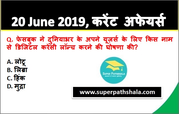 | Q7. | फेसबुक ने दुनियाभर के अपने यूज़र्स के लिए किस नाम से डिजिटल करेंसी लॉन्च करने की घोषणा की? |