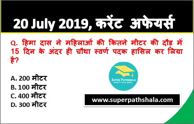 | Q10. | हिमा दास ने महिलाओं की कितने मीटर की दौड़ में 15 दिन के अंदर ही चौथा स्वर्ण पदक हासिल कर लिया है? |