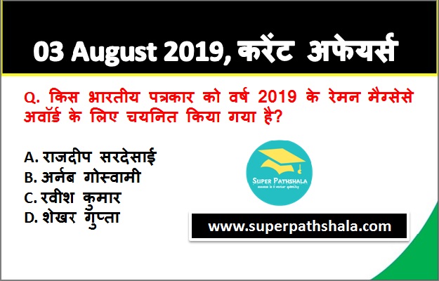 | Q1. | किस भारतीय पत्रकार को वर्ष 2019 के रेमन मैग्सेसे अवॉर्ड के लिए चयनित किया गया है? |