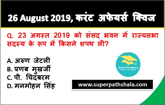 | Q9. | 23 अगस्त 2019 को संसद भवन में राज्यसभा सदस्य के रूप में किसने शपथ ली? |