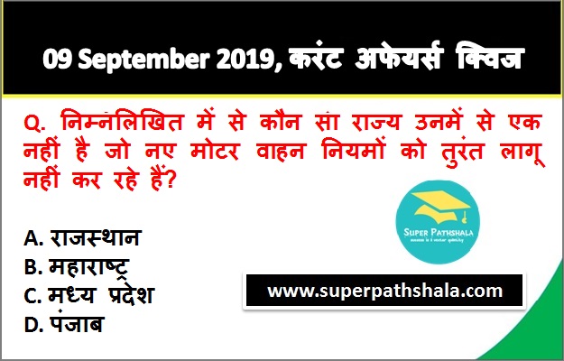 | Q5. | निम्नलिखित में से कौन सा राज्य उनमें से एक नहीं है जो नए मोटर वाहन नियमों को तुरंत लागू नहीं कर रहे हैं? |