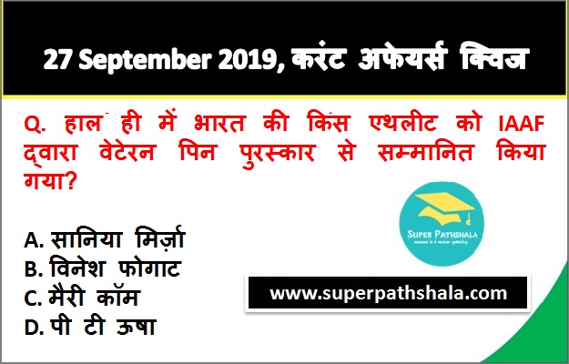 | Q6. | हाल ही में भारत की किस एथलीट को IAAF द्वारा वेटेरन पिन पुरस्कार से सम्मानित किया गया? |