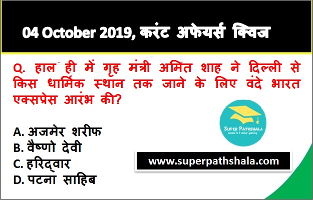 | Q1. | हाल ही में गृह मंत्री अमित शाह ने दिल्ली से किस धार्मिक स्थान तक जाने के लिए वंदे भारत एक्सप्रेस आरंभ की? |