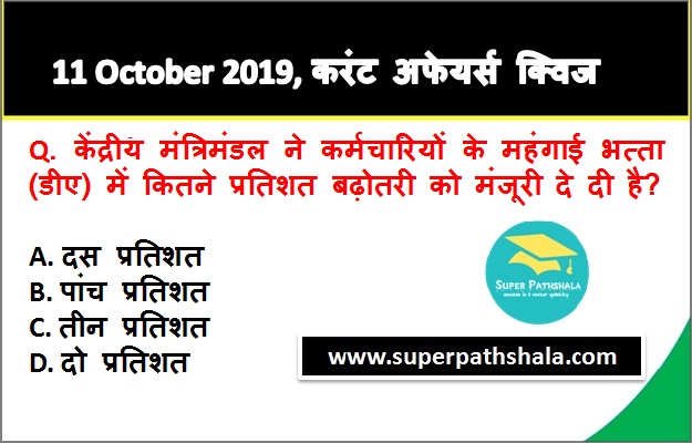 | Q1. | केंद्रीय मंत्रिमंडल ने कर्मचारियों के महंगाई भत्ता (डीए) में कितने प्रतिशत बढ़ोतरी को मंजूरी दे दी है? |