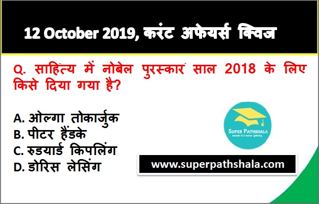 | Q1. | साहित्य में नोबेल पुरस्कार साल 2018 के लिए किसे दिया गया है? |