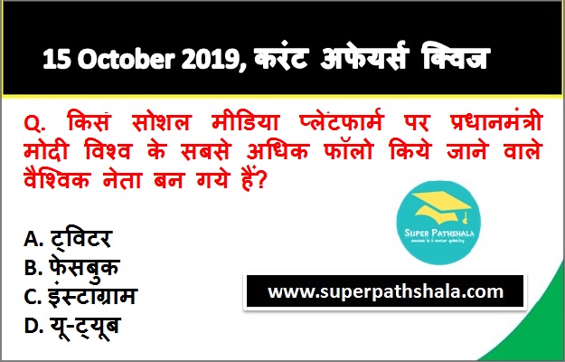 | Q6. | किस सोशल मीडिया प्लेटफार्म पर प्रधानमंत्री मोदी विश्व के सबसे अधिक फॉलो किये जाने वाले वैश्विक नेता बन गये हैं? |