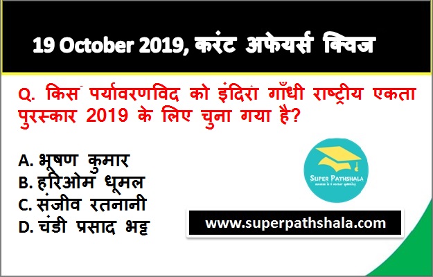 | Q5. | किस पर्यावरणविद को इंदिरा गाँधी राष्ट्रीय एकता पुरस्कार 2019 के लिए चुना गया है? |