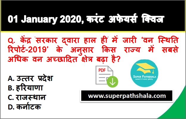 | Q2. | केंद्र सरकार द्वारा हाल ही में जारी ‘वन स्थिति रिपोर्ट-2019’ के अनुसार किस राज्य में सबसे अधिक वन अच्छादित क्षेत्र बढ़ा है? |