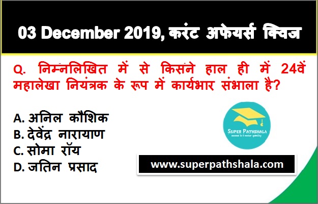 | Q1. | निम्नलिखित में से किसने हाल ही में 24वें महालेखा नियंत्रक के रूप में कार्यभार संभाला है? |