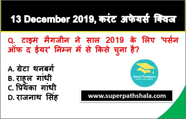 | Q2. | टाइम मैगजीन ने साल 2019 के लिए 'पर्सन ऑफ द ईयर' निम्न में से किसे चुना है? |