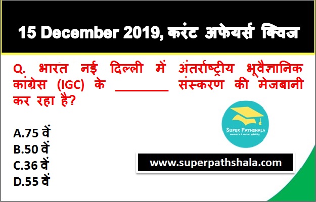 | Q3. | भारत नई दिल्ली में अंतर्राष्ट्रीय भूवैज्ञानिक कांग्रेस (IGC) के _______ संस्करण की मेजबानी कर रहा है? |