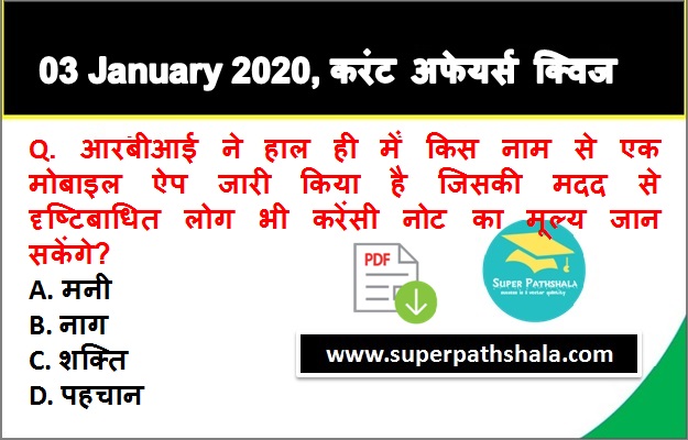 | Q3. | आरबीआई ने हाल ही में किस नाम से एक मोबाइल ऐप जारी किया है जिसकी मदद से दृष्टिबाधित लोग भी करेंसी नोट का मूल्य जान सकेंगे? |