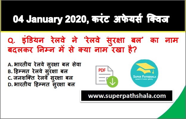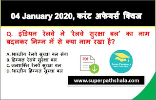 | Q1. | इंडियन रेलवे ने ‘रेलवे सुरक्षा बल’ का नाम बदलकर निम्न में से क्या नाम रखा है? |
