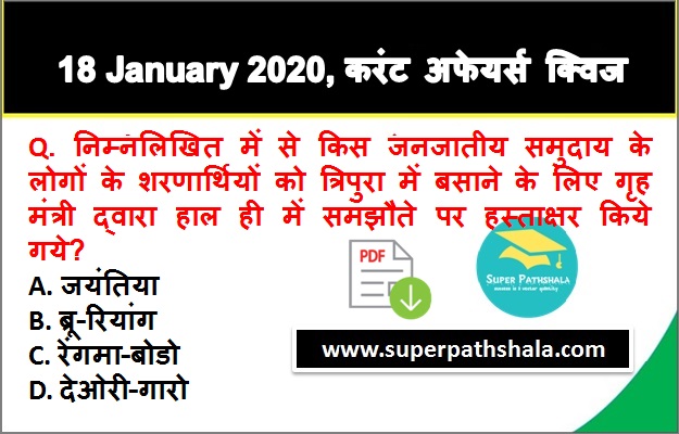 | Q2. | निम्नलिखित में से किस जनजातीय समुदाय के लोगों के शरणार्थियों को त्रिपुरा में बसाने के लिए गृह मंत्री द्वारा हाल ही में समझौते पर हस्ताक्षर किये गये? |
