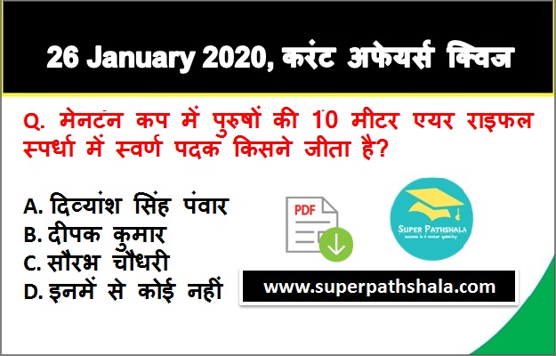Ans: दिव्यांश सिंह पंवार विवरण: दिव्यांश सिंह पंवार ने आस्ट्रिया में आयोजित मेनटन कप में 10 मीटर एयर राइफल श्रेणी में स्वर्ण पदक जीता है जबकि आईएसएसएफ विश्व कप 2019 में स्वर्ण पदक विजेता भारतीय निशानेबाज अपूर्वी चंदेला ने 10 मीटर एयर राइफल महिला वर्ग में स्वर्ण पदक जीता। |