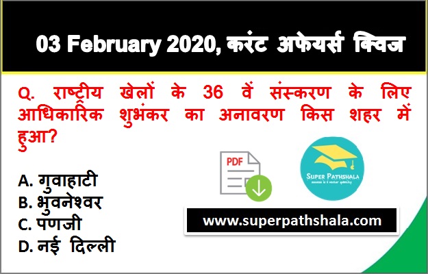 | Q1. | राष्ट्रीय खेलों के 36 वें संस्करण के लिए आधिकारिक शुभंकर का अनावरण किस शहर में हुआ? |