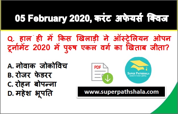 | Q2. | हाल ही में किस खिलाड़ी ने ऑस्ट्रेलियन ओपन टूर्नामेंट 2020 में पुरुष एकल वर्ग का खिताब जीता? |