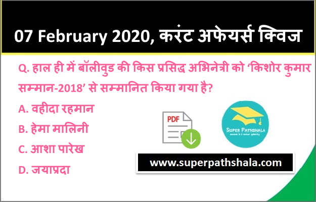 | Q1. | हाल ही में बॉलीवुड की किस प्रसिद्ध अभिनेत्री को ‘किशोर कुमार सम्मान-2018’ से सम्मानित किया गया है? |