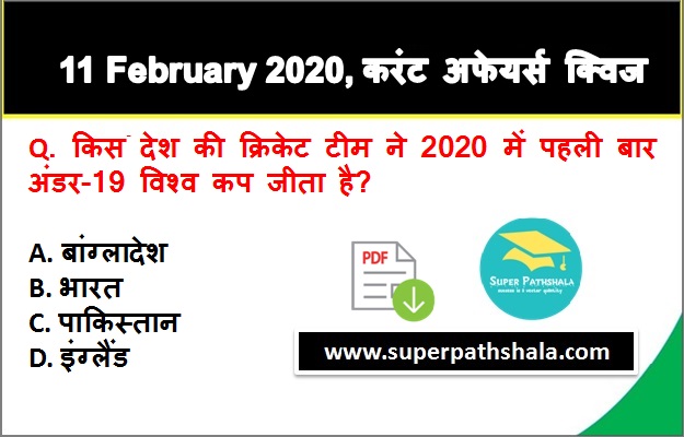 | Q1. | किस देश की क्रिकेट टीम ने 2020 में पहली बार अंडर-19 विश्व कप जीता है? |
