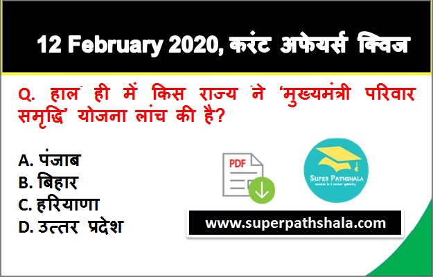 | Q2. | हाल ही में किस राज्य ने ‘मुख्यमंत्री परिवार समृद्धि’ योजना लांच की है? |