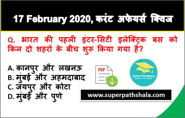 | Q4. | भारत की पहली इंटर-सिटी इलेक्ट्रिक बस को किन दो शहरों के बीच शुरू किया गया है? |