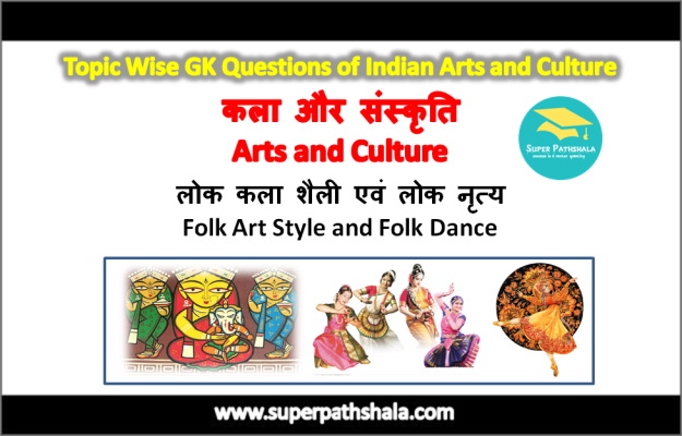 Folk Art Style and Folk Dance [लोक कला शैली एवं लोक नृत्य] is very important topic of Indian Art and Culture (भारतीय कला और संस्कृति) in the exam point of view. We are going to share the set of 20 Multiple Choice Questions in this post. Complete the all practice set of this topic that are provided by Super Pathshala. GK questions of this post "लोक कला शैली एवं लोक नृत्य GK Questions Set 5" are very helpful for various government exams e.g. UPSC, SSC, Railway, Banking, State PSC, CDS, NDA, SSC CGL, SSC CHSL, Patwari, Samvida, Police, SI, CTET, TET, Army, MAT, CLAT, NIFT, IBPS PO, IBPS Clerk, CET, Vyapam etc. General Knowledge or Samanya Gyan is very important section to crack any exam. In this section we are providing GK in Hindi and GK Questions in English in another section. These Online Quiz contain the previous year asked questions in various govt exams, so practice these Online GK Test in Hindi at least one set of each subject daily. Get also all other subjects GK Questions and Answers in MCQ format from Super Pathshala.