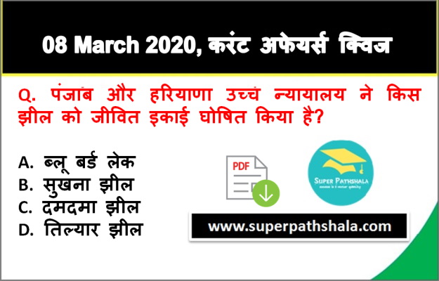 | Q1. | पंजाब और हरियाणा उच्च न्यायालय ने किस झील को जीवित इकाई घोषित किया है? |