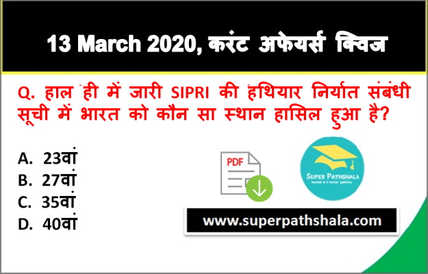 | Q2. | हाल ही में जारी SIPRI की हथियार निर्यात संबंधी सूची में भारत को कौन सा स्थान हासिल हुआ है? |