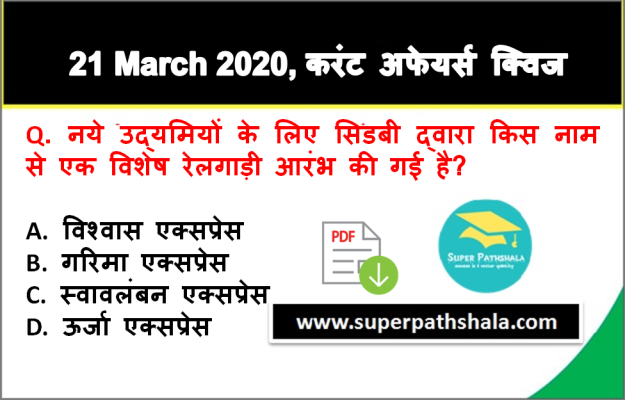| Q2. | नये उद्यमियों के लिए सिडबी द्वारा किस नाम से एक विशेष रेलगाड़ी आरंभ की गई है? |