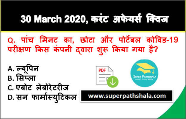 | Q8. | पांच मिनट का, छोटा और पोर्टेबल कोविड-19 परीक्षण किस कंपनी द्वारा शुरू किया गया है? |