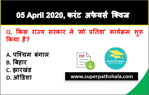 | Q2. | किस राज्य सरकार ने ‘मो प्रतिवा’ कार्यक्रम शुरू किया है? |