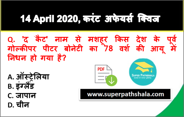 | Q8. | 'द कैट' नाम से मशहूर किस देश के पूर्व गोल्कीपर पीटर बोनेटी का 78 वर्श की आयू में निधन हो गया है? |